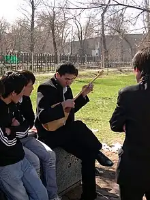 домбри́ст • (dombríst) m anim (genitive домбри́ста, nominative plural домбри́сты, genitive plural домбри́стов, feminine домбри́стка)