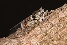 - (dialectal) cicada (hemipteran insect of family Cicadoidea, known for their hissing songs during summer)