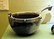 Inherited from Old East Slavic ковшь (kovšĭ), borrowed from Lithuanian káušas (“ladle, dipper, big spoon”), derived from Lithuanian káuti (“hew, chop out”), from Proto-Balto-Slavic *káuˀtei, from Proto-Indo-European *kowh₂-, from the root *kewh₂-.