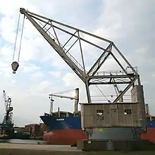 - crane (mechanical lifting machine or device, often used for lifting heavy loads for industrial or construction purposes)