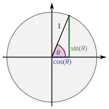 - (trigonometry) sine (ratio between the length of an opposite side to the length of the hypotenuse in a right-angle triangle)