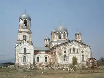 Cognate with Tatar чиркәү (çirkäw), Kazakh шіркеу (şırkeu), Kyrgyz чиркөө (cirköö), Uzbek cherkov, Uyghur چېركو (chërko, “church”).