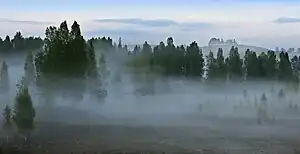 Cognate with Old Uyghur [script needed] (tuman, “mist, fog”); Kazakh тұман (tūman), Uzbek tuman, Uyghur تۇمان (tuman), Yakut туман (tuman), Turkish duman (“mist, fog”), etc.