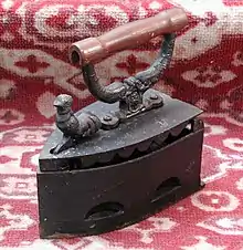 утю́г • (utjúg) m inan (genitive утюга́, nominative plural утюги́, genitive plural утюго́в, relational adjective утю́жный, diminutive утюжо́к)