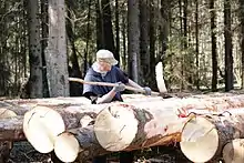 Stripping spruce bark.