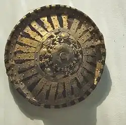 تُرْس • (turs) m (plural تُرُوس (turūs) or أَتْراس (ʔatrās))