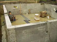 - (architecture) foundation, base, underbuilding, that upon which anything is founded
