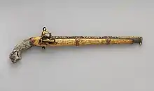- → Persian: تپانچه (tapânče), تپنچه (tapanče), تمنچه (tamanča); تفنگچه (tufangča)