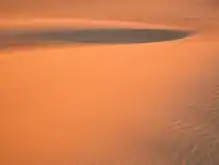 From the root غ ر د (ḡ-r-d) in the sense of warbling or fluctuating, in reference to the changing and shifting of the sand.