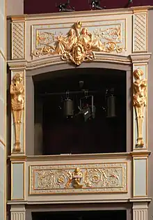 - loge, box, a compartment to sit inside in an auditorium, courtroom, theatre, or other similar building