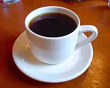 Borrowed from English coffee, from Dutch koffie, from Italian caffè, from Ottoman Turkish قهوه (kahve), from Arabic قَهْوَة (qahwa, “coffee, a brew”). Doublet of કહવા (kahvā).