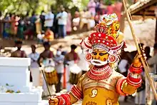 A theyyam artist with a bow and an arrow
