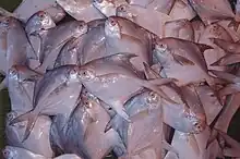 1. pomfret, medium-sized flat marine fish belonging to the family Bramidae.