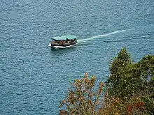 A boat cruising over a reservoir