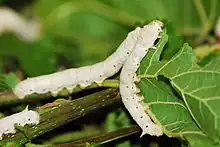 - silkworm; larva of the moth Bombyx mori, the cocoons of which yield silk.