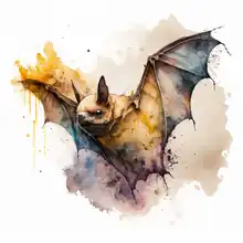 A watercolour painting of a bat