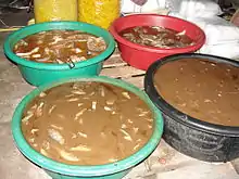 - pla ra, a dish of fish fermented with salt and other ingredients, as rice bran or roasted rice powder.