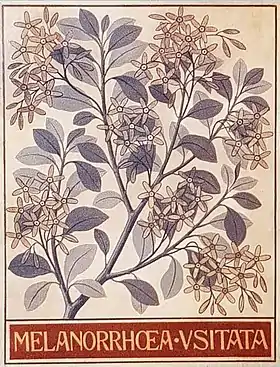 - thitsi, Burmese varnish tree, lignum-vitae of Pegu (Gluta usitata, syn. Melanorrhoea usitata[1]), harvested to make a lacquer for lacquerware.[2]