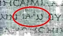 Paleo-Hebrew Divine Name 𐤉𐤄𐤅𐤄 rendered into Koine Greek as Ιαω Yaoh, Leviticus 4:27 of Septuagint (LXX) manuscript 4Q120. Fragment dated c. 1st century BCE, from the Dead Sea Scrolls found at Qumran.