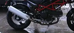 - (automotive) a muffler (a device attached to a vehicle's exhaust to reduce the sound)