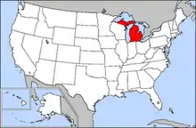 Map of US highlighting Michigan