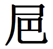 㞎 (Kangxi radical 44, 尸+4, 7 strokes, cangjie input 尸日山 (SAU), composition ⿸尸巴)