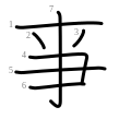 亊 (Kangxi radical 6, 亅+6, 7 strokes, cangjie input 十火中弓 (JFLN), composition ⿻⿳一丷⺕亅)