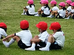 From 体育 (taiiku, “physical education”) + 座り (suwari, “sitting”).