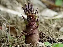 呉竹 (kuretake, gochiku): a shoot of henon bamboo.