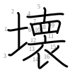 壊 (Kangxi radical 32, 土+13, 16 strokes, cangjie input 土十田女 (GJWV), composition ⿰土⿳十罒衣)