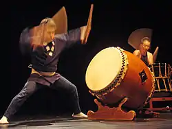 Sino-Japanese compound of 太 (tai, “big, fat, thick”) + 鼓 (ko, “drum”).