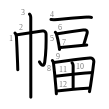 幅 (Kangxi radical 50, 巾+9, 12 strokes, cangjie input 中月一口田 (LBMRW), four-corner 41266, composition ⿰巾畐)