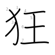 狂 (Kangxi radical 94, 犬+4, 7 strokes, cangjie input 大竹一土 (KHMG), four-corner 41214, composition ⿰犭王)