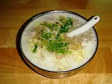 | congee; gruel; porridge | dissolved; rice-gruel; wasted | ||