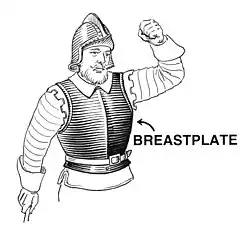 The breastplate sense is specific to western-style armor. This term is not used for Japanese armor, where instead the portion covering the torso is called the 胴 (dō).