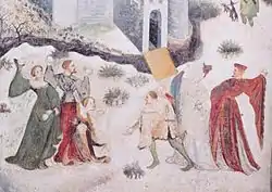 Depiction of a snowball fight, circa 1400 C.E..