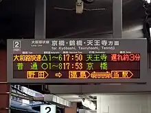 Compound of 電光 (denkō, “electric light”) + 掲示板 (keijiban, “bulletin board”).