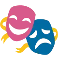 - [This social mapping website uses a brown 🎭 to indicate a theatre.]