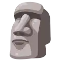 A moai, one of the famed, giant stone statues of human figures on Easter Island. Depicted as a gray stone carving of a stylized human head with a prominent brow and nose, most often facing left.