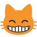 - The display of this emoji varies by platform, but most operating systems depict a yellow cat grinning or smiling with no teeth showing or only its upper teeth visibleโoften with fangs