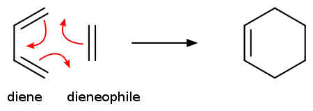 - (organic chemistry) The cycloaddition reaction between a conjugated diene and an alkene to form a cyclohexene ring.