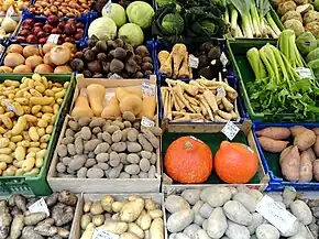 - (uncountable, countable) vegetable; vegetables (kinds of plants)