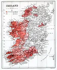 Gàidhealtachd na h-Èireann ann an 1871. Bha mòran sgìrean eile Ghàidhealach ann an 1851.