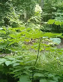 - An upright herbaceous perennial plant, Aralia cordata, growing up to 2 to 3 metres in height and native to Japan, Korea, and eastern China.