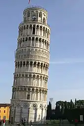 - A famous bell tower in the Italian town of Pisa, known for its irregular lean.