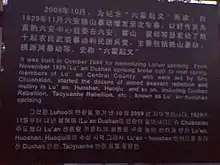 Plaque commemorating the Lu'an-Huoshan Uprising (六霍起义) (2009)