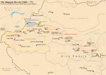 Map of the Dungan Revolt showing Qarqan (Qiemo)