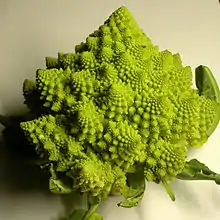 - Romanesco broccoli, a light-green edible flower bud of certain forms of Brassica oleracea var. botrytis, which is thus related to broccoli and cauliflower. Its form is a natural approximation of a fractal.