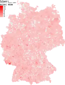 From the adjective schwarz, from Middle High German swarz, from Old High German swarz, from Proto-West Germanic *swart, from Proto-Germanic *swartaz, from Proto-Indo-European *swordo- (“dirty, dark, black”). Compare German schwarz, Dutch zwart, English swart.