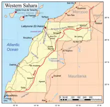 - Western Sahara (A territory and former Spanish colony in North Africa, now mostly occupied by Morocco, which claims ownership over the territory)